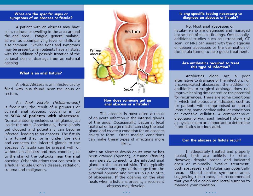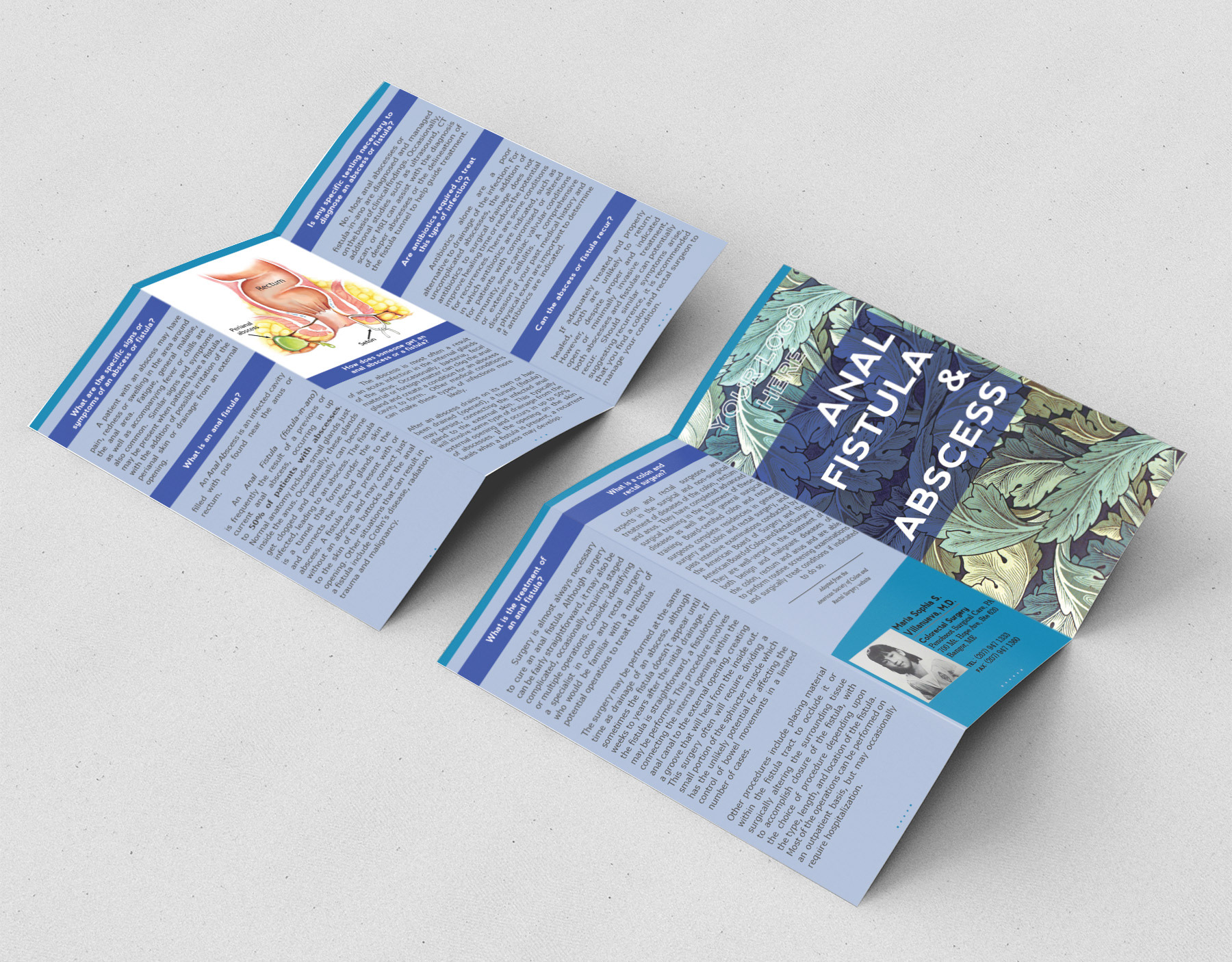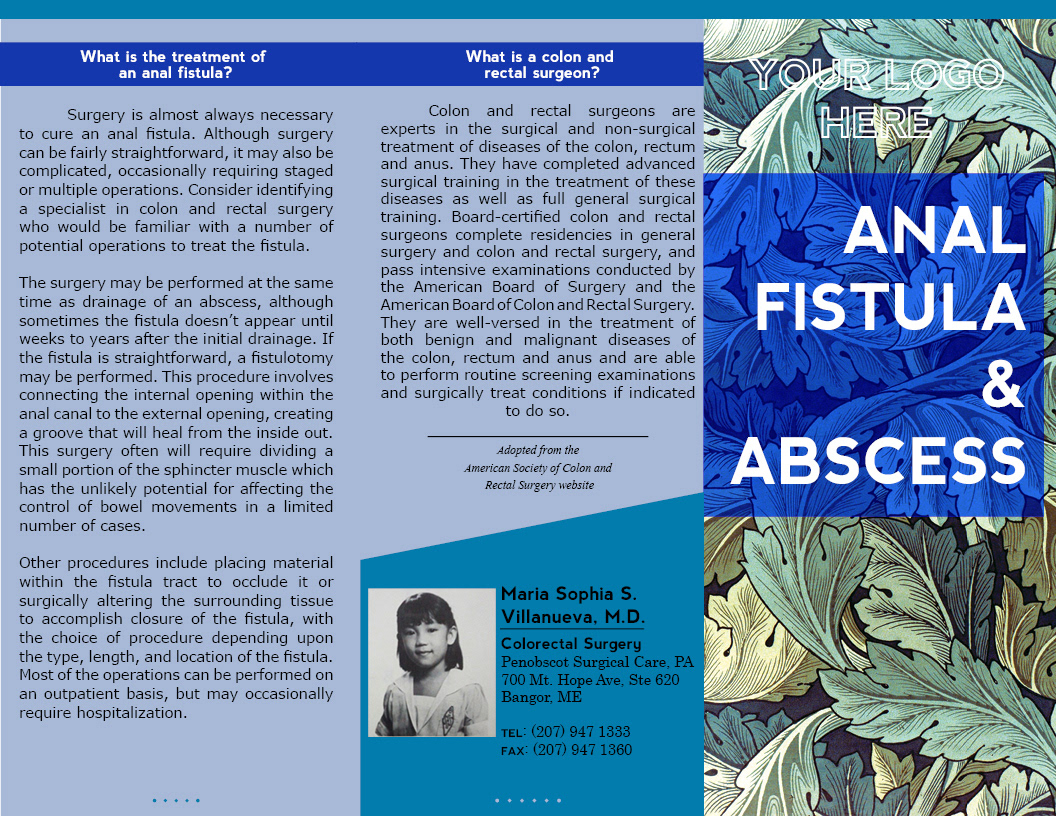 A trifold brochure for a colon and rectal surgeon explaining